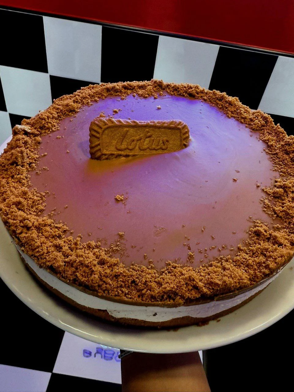 Cheesecake fredda preparata in casa con crema di formaggio e base di biscotti Lotus.