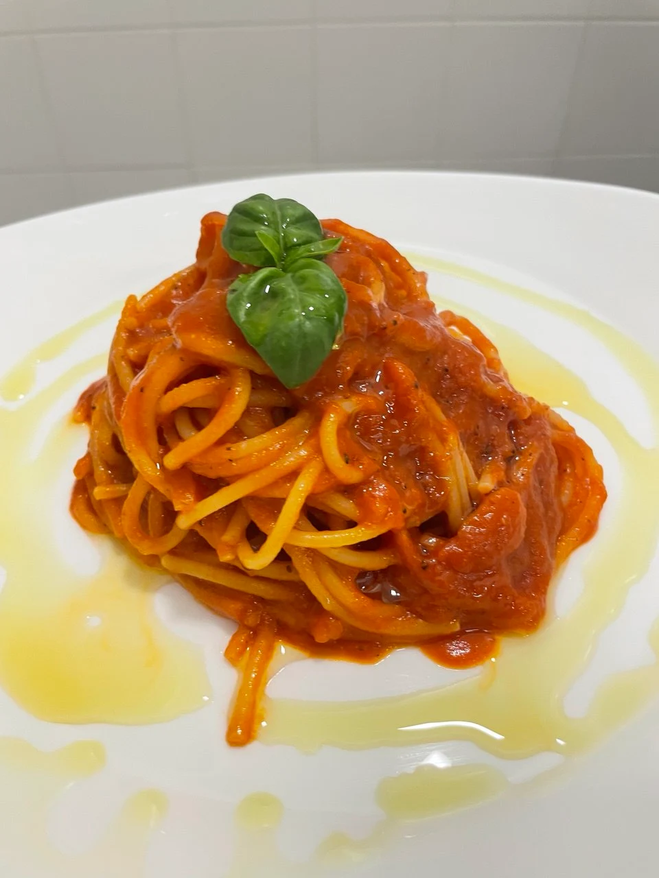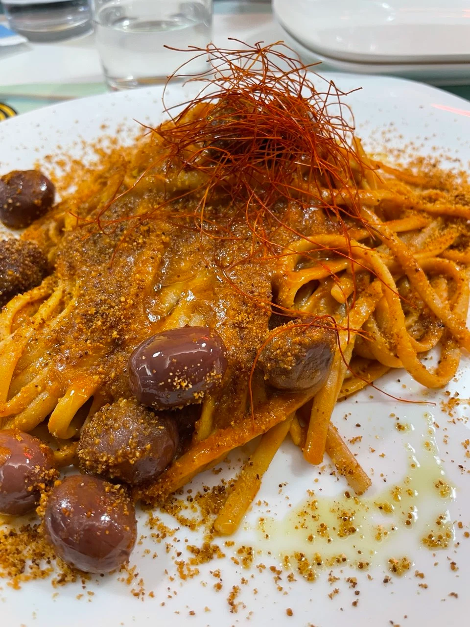 Struncatura rossa con aglio, olio, peperoncino, olive nere, acciughe e pan grattato